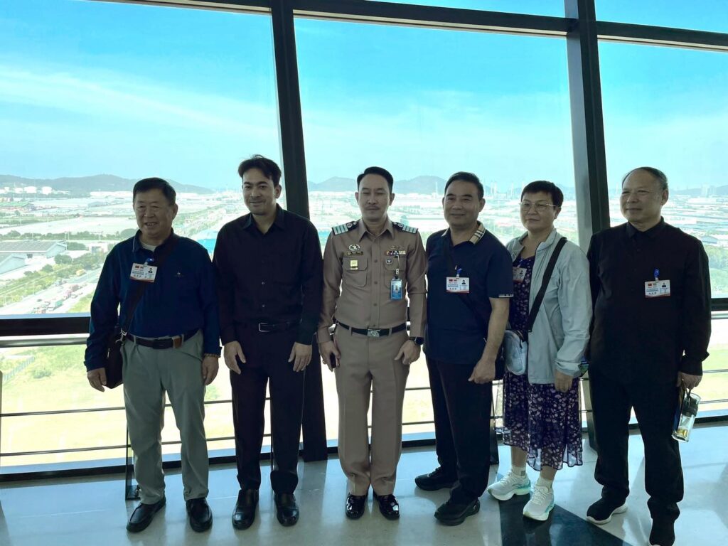 The delegation was received at the Laem Chabang Development Control Tower by Sergeant Major Third Class Patinya Sirirak, Chief of the Administrative and Services Section (acting as Chief of the Public Relations Section), and Mr. Pakin Anchurit, Public Relations Officer 6 of the General Administration Division.