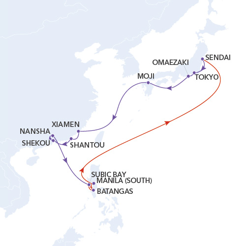 ทั้งนี้ บริการ JP8 ที่ได้รับการปรับปรุงจะมีรอบการวนเรือเริ่มต้นจาก Sendai ไปยัง Tokyo, Omaezaki, Moji, Xiamen,  Shantou, Shekou, Nansha, Subic Bay, Batangas, Manila South ก่อนจะวนกลับไปที่ Sendai อีกครั้ง