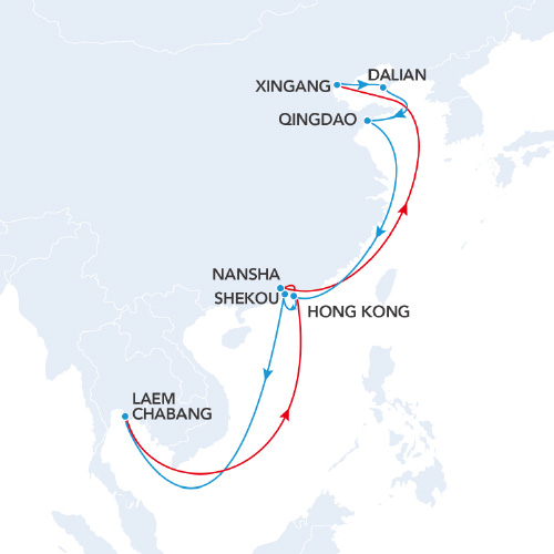 ทั้งนี้ CNC จะให้บริการ NT8 ด้วยเรือ CMA CGM QUELIMANE ตั้งแต่วันที่ 16 มกราคมเป็นต้นไป โดยเริ่มรอบการวนเรือจาก Xingang ไปยัง Dalian, Qingdao, Hong Kong, Shekou, Laem Chabang, Hong Kong, Nansha ก่อนจะวนกลับไปยัง Xingang อีกครั้ง