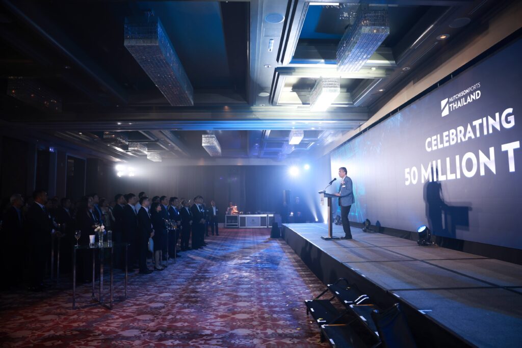 ในโอกาสนี้ Mr. Stephent Ashworth กรรมการผู้จัดการ Hutchison Ports ประเทศไทยและเอเชียตะวันออกเฉียงใต้ กล่าวว่า “เรารู้สึกภูมิใจที่ได้เฉลิมฉลองยอดสะสมตู้สินค้าผ่านท่าปริมาณ 50 ล้านทีอียู การบรรลุหลักชัยในครั้งนี้แสดงให้เห็นถึงความมุ่งมั่น นวัตกรรม และพันธมิตรที่แข็งแกร่งของเราตลอดสองทศวรรษ อีกทั้งยังสะท้อนความเชื่อมั่นที่ลูกค้า การท่าเรือแห่งประเทศไทย หน่วยงานภาครัฐ ผู้ให้บริการขนส่ง ผู้ส่งสินค้า และผู้ถือหุ้นมีให้ รวมถึงแรงสนับสนุนที่ช่วยให้เราสามารถบรรลุหลักชัยครั้งนี้ ผมขอแสดงความขอบคุณแก่ทุกท่านที่คอยอยู่เคียงข้างเราตลอดการเดินทางที่ผ่านมา”