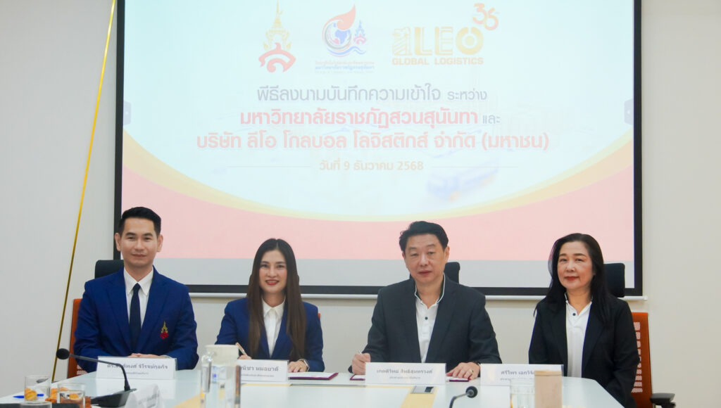 เมื่อเร็วๆ นี้ บริษัท LEO Global Logistics (LEO) และวิทยาลัยโลจิสติกส์และซัพพลายเชน มหาวิทยาลัยราชภัฏสวนสุนันทา (SSRU) ได้ลงนามบันทึกข้อตกลงความร่วมมือทางวิชาการในโครงการ ‘ผลิตบัณฑิตปริญญาตรี สาขาวิชาการจัดการซัพพลายเชนธุรกิจ แขนงวิชาธุรกิจพาณิชยนาวี’ โดยมีผู้ช่วยศาสตราจารย์ ดร.ชณิชา หมอยาดี คณบดีวิทยาลัยโลจิสติกส์และซัพพลายเชน มหาวิทยาลัยราชภัฏสวนสุนันทา และคุณเกตติวิทย์ สิทธิสุนทรวงศ์ ประธานเจ้าหน้าที่บริหาร LEO ร่วมลงนาม