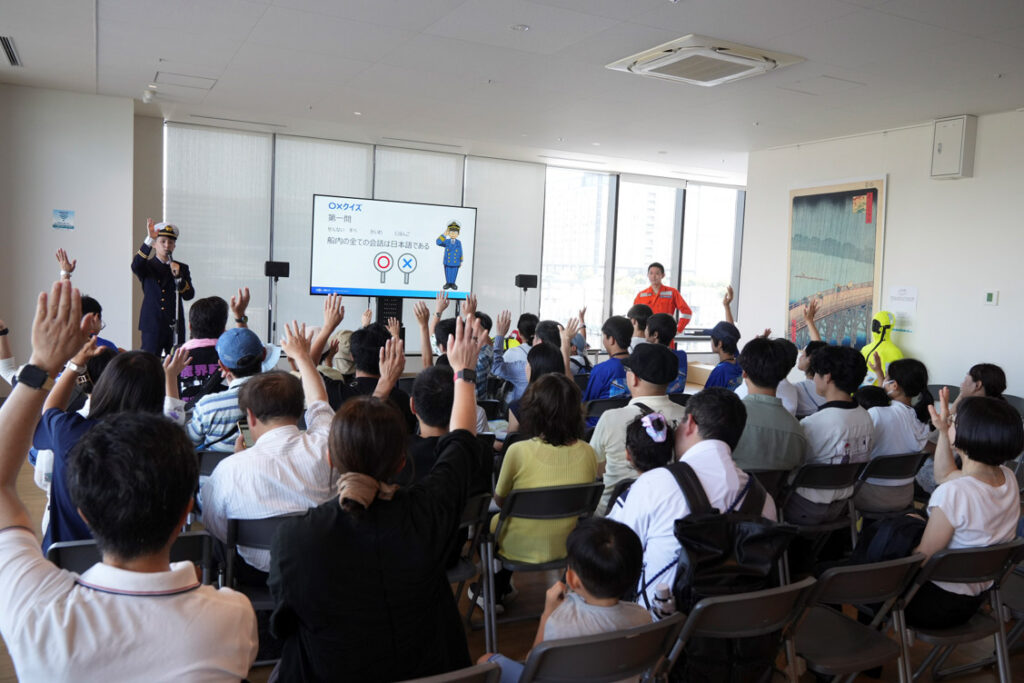 นอกจากนี้ เด็กๆ ยังได้รับประสบการณ์ในการควบคุมเครื่องจำลองการเดินเรือที่ท่าเทียบเรือ Tokyo International Cruise Terminal และเข้าชมพิพิธภัณฑ์ Funeshiru ของ MOL ซึ่งเปิดเมื่อวันที่ 19 กรกฎาคมที่ผ่านมา โดยมีการจัดแสดงแบบเน้นการมีส่วนร่วม พร้อมกิจกรรมพูดคุยและแนะนำการทำงานของผู้ควบคุมเรือและวิศวกรบนเรือ รวมถึงการจัดแสดงหนังสือพิมพ์เกี่ยวกับการขนส่งทางเรือซึ่งช่วยให้ผู้เข้าร่วมกิจกรรมได้รับความรู้และเข้าใจเกี่ยวกับเรือและอุตสาหกรรมการเดินเรือมากยิ่งขึ้น